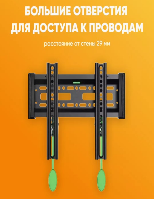 Фиксированный настенный кронштейн с расстоянием от стены 29 мм для телевизоров с диагональю от 32 до 65 дюймов. Система быстрой фиксации позволяет легко и просто повесить телевизор или снять его с крепления телевизора к стене. Стандарт крепления на стену VESA 75x75 100x100 200x100 200x200. Сохраняется необходимое расстояние для доступа к проводам, для подключения кабелей и штекеров, а также для розетки, в случае если она расположена за телевизором. В комплекте с кронштейном C2-F для ТВ имеется полный набор для крепления. Крепление для видеотехники C2-F отвечает высочайшим стандартам качества. Кронштейн для телевизора настенный прост в установке и надёжен в использовании. Максимальная нагрузка 15 кг. Кронштейн для ТВ прочен и долговечен. Материал крепления телевизора 32-65 дюймов 100% высококачественная сталь, устоячивая к ржавчине.