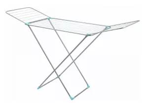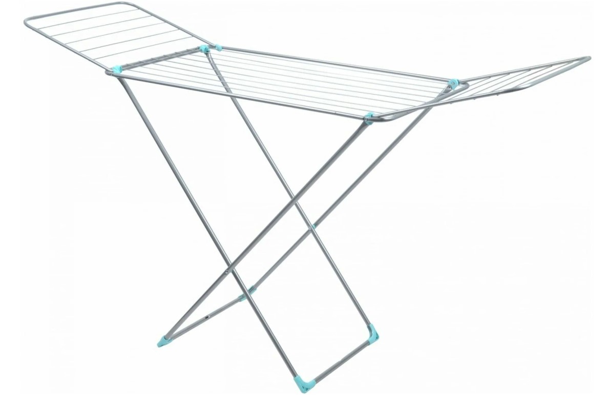 Благодаря 18 метрам сушильного полотна можно разместить сразу большое количество вещей, включая постельное бельё. Удобные раскладывающиеся крылья и крепление для носков позволяют рационально использовать пространство.
